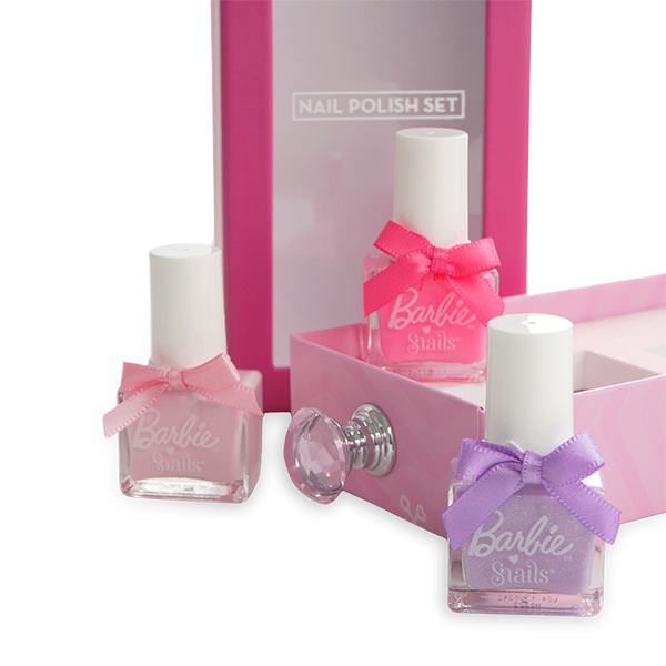 Be a Global Icon with the Barbie Snails Collection – a playful and vibrant lineup of nail polishes and accessories designed for kids who love all things cute and stylish! From bright pinks to glittery purples, each polish lets young fashionistas express their unique style, all in a safe, water-based formula that’s easy to wash off with soap and water. The moisturizing lip balms and dreamy nail stickers let you stand out as the fearless dreamer you are. Made with the safest ingredients, the Barbie Snails Collection is ready to make every day a little more iconic.