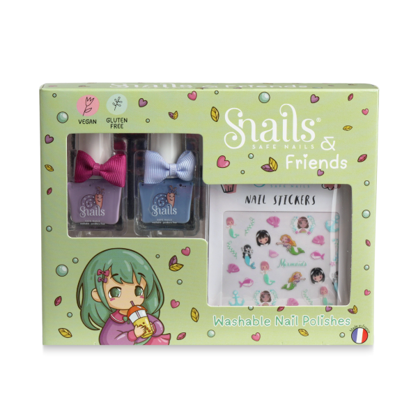 Dive into an enchanting underwater adventure with the Snails & Friends Mermaid Lagoon! This magical kit boasts two captivating, washable nail polishes in shimmering oceanic hues. Transform nails into tiny canvases with the included whimsical mermaid and sea-themed nail stickers. Let your child’s inner mermaid shine!